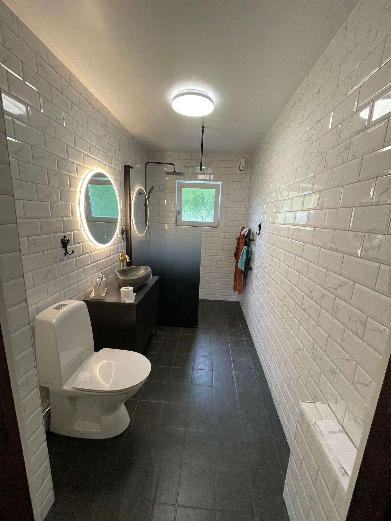 Vi tar hand om hela badrumsrenoveringen från rivning till färdiga ytor. Tätskikt, plattsättning och inredning utförs enligt branschkrav. Med smart planering och tydliga val skapar vi ett badrum som känns genomtänkt, lätt att sköta och hållbart över tid.